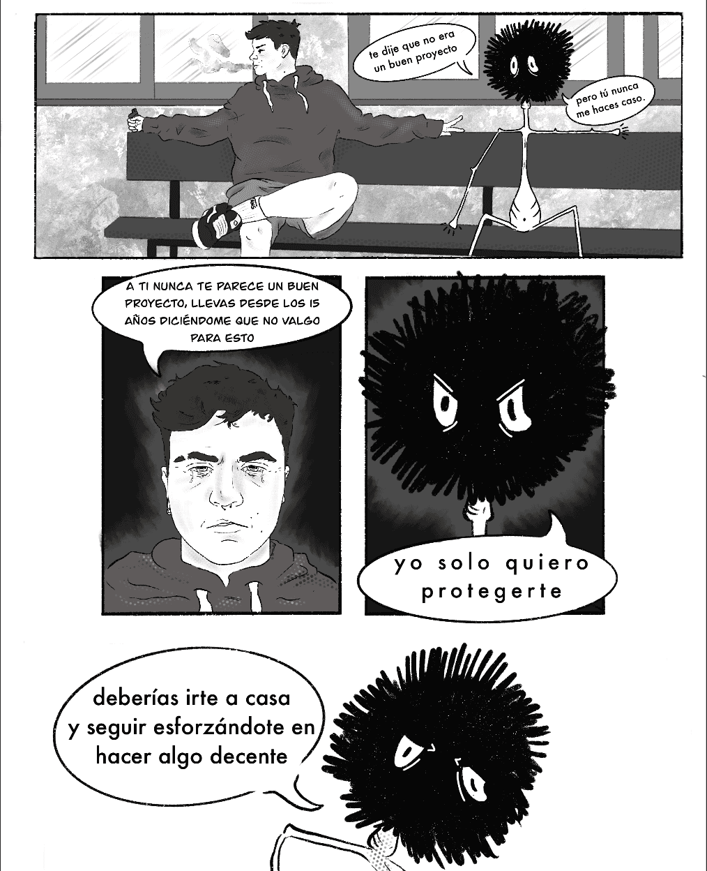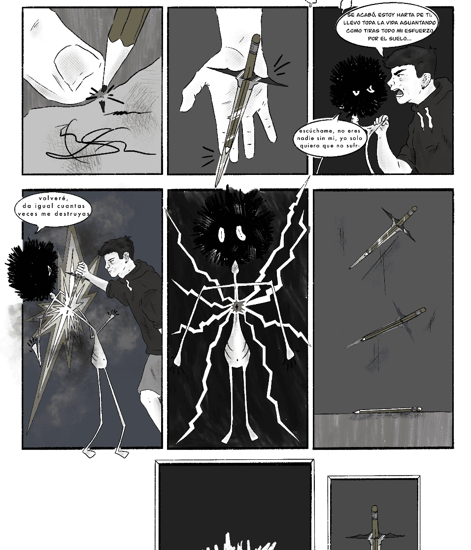 Este breve cómic autobiográfico de dos páginas trata sobre como afecta el síndrome del impostor en el día a día de los artistas, representando este síndrome en forma de criatura y utilizando el poder de la constancia como arma.